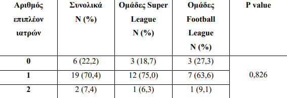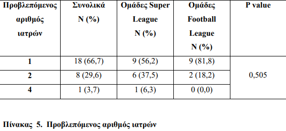 Από τις 27 ομάδες των δύο εθνικών κατηγοριών που συμμετείχαν στην έρευνα, οι 22 έχουν ορίσει ως υπεύθυνο ιατρό ορθοπαιδικό.