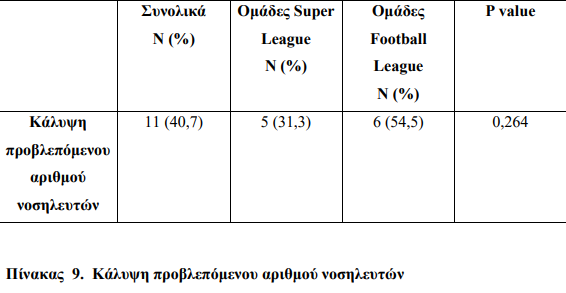 Στο σύνολο 11 ομάδες (ποσοστό 40,7%) καλύπτουν τον προβλεπόμενο αριθμό νοσηλευτών. Δεν παρατηρείται στατιστικά σημαντική διαφορά ανάμεσα στις δύο κατηγορίες.