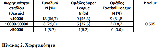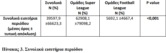 Από τον παραπάνω πίνακα προκύπτει στατιστικά σημαντική διαφορά ανάμεσα στις ομάδες Super League και σε αυτές της Football League ως προς τα συνολικά εισιτήρια της περιόδου 2016-17.