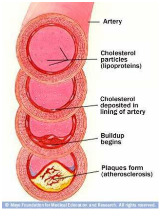 Γενικά οι αρτηρίες φράζουν από πλάκες που σχηματίζει η χοληστερόλη και τα λιπίδια. Η συσσώρευση αυτών των πλακών είναι γνωστή σαν στεφανιαία νόσος. Σε αρκετές περιπτώσεις η συσσώρευση των πλακών είναι προοδευτική διαδικασία και μπορεί να προκαλεί συμπτώματα που ονομάζονται στηθάγχη.