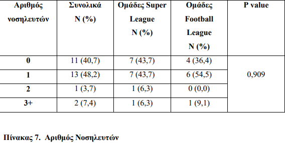 Από τον παραπάνω πίνακα προκύπτει ότι συνολικά 5 ομάδες από αυτές που συμμετείχαν στην έρευνα (ποσοστό 18,5%) καλύπτουν τον προβλεπόμενο αριθμό διασωστών, ενώ δεν καταγράφεται στατιστικά σημαντική διαφορά κατά τη σύγκριση των ομάδων Super League και Football League.