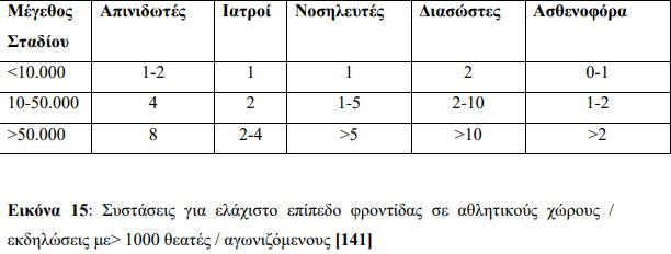 - Παρουσία 2 διασωστών ανά 10.000 θεατές