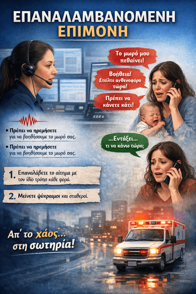 Είναι χρήσιμο να θυμάστε ότι οι καλούντες βρίσκονται σε αγχωτικές συνθήκες. Τα χέρια τρέμουν, η αναπνοή γίνεται δύσκολη, υπάρχει ένταση. Μπορεί να είναι συγγενείς ή οι ίδιοι οι ασθενείς. Αυτά εντείνουν την κατάσταση.