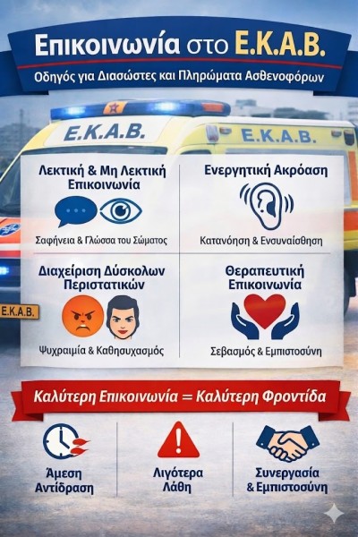 Στο περιβάλλον του ασθενοφόρου, όπου κάθε δευτερόλεπτο μετρά, η σωστή επικοινωνία μπορεί να κάνει τη διαφορά — όχι μόνο στην εμπειρία του ασθενούς, αλλά και στην ίδια την έκβαση της ζωής του.