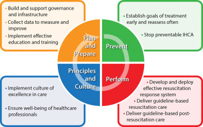 Για να βελτιωθεί η φροντίδα και τα αποτελέσματα της IHCA, το ILCOR ανέπτυξε ένα στρατηγικό πλαίσιο 10 βημάτων, που στοχεύει στην: