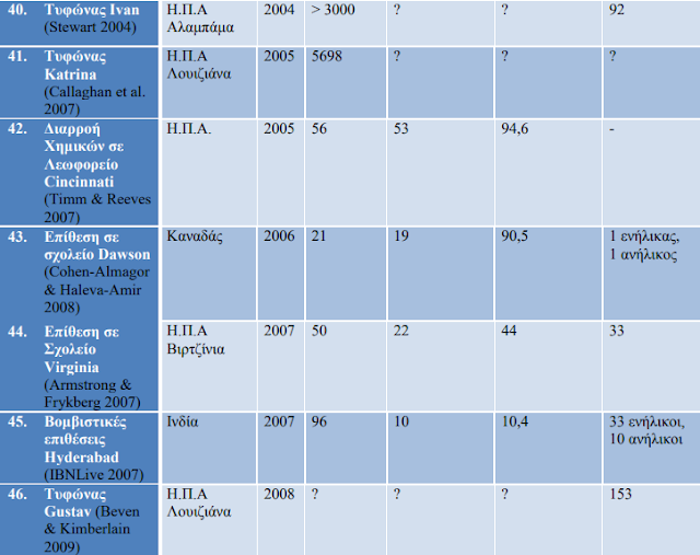 Αναλόγως το είδος της καταστροφής ή του συμβάματος ή του χώρου όπου λαμβάνει χώρα, ο αριθμός των παιδιατρικών θυμάτων αυξάνει δυσανάλογα (Becker et al. 2006).