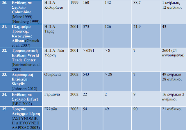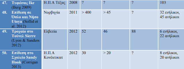 Σημειώνεται ότι ο ορισμός του μαζικού συμβάματος που χρησιμοποιήθηκε στην περίπτωση της καταγραφής τους είναι αυθαίρετος και δεν εδράζεται σε επιστημονική τεκμηρίωση.