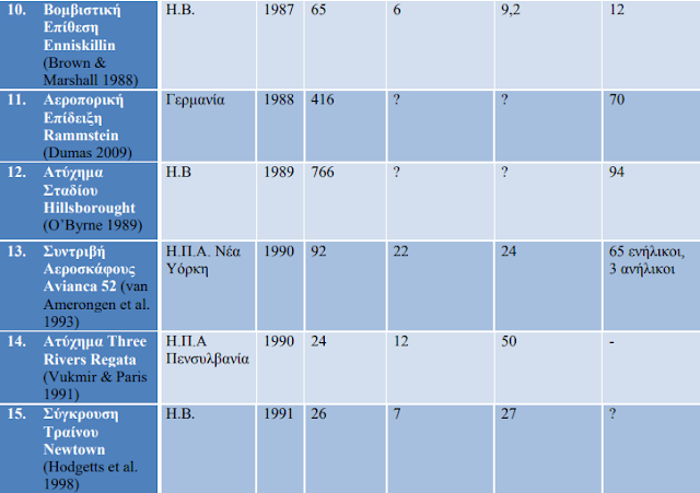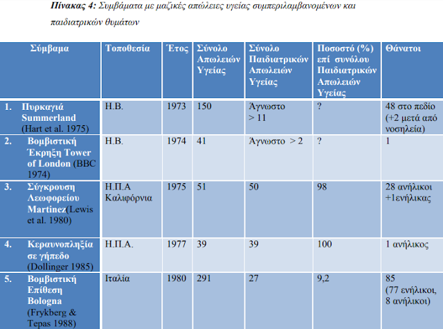 Συζήτηση Στοιχεία για την βαρύτητα των παιδιατρικών τραυματιών δεν ήταν δυνατό να συγκεντρωθούν ωστόσο άλλες προσπάθειες ανάλογης καταγραφής μαζικών συμβαμάτων τείνουν να δείξουν ότι έχουν ως αποτέλεσμα κυρίως ελάσσονα τραύματα σε σχέση με μείζονα τραύματα ή στέρηση ζωής (Carley et al. 1998).